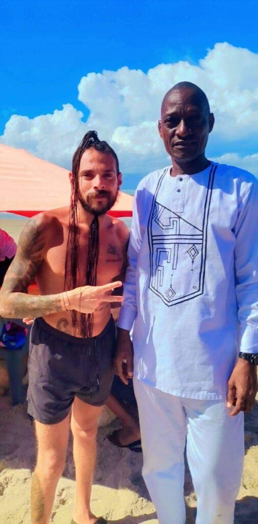 Notre ancien président BYVAH Thierry, en compagnie de BADRO, lors de la 1ère sortie de l’amicale à BADRO BEACH d’assouindé